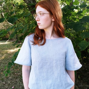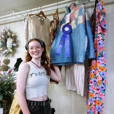 Above right is a linen top designed by Libby. On the left is the award Libby received for her quilted jacket designed by up-cycling and sewing!