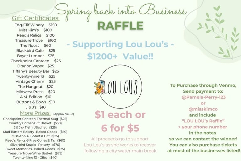 Lou Lou's was seriously damaged on Saturday January 24th. A city water main broke during the night! Merchants are raffling tickets to raise money!